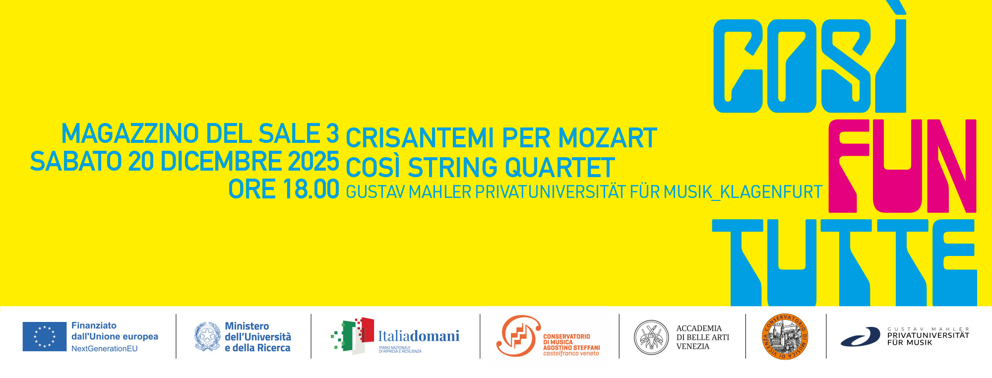 L’Accademia di Belle Arti di Venezia invita ad una terza preview del progetto: al concerto del Così String Quartet, formazione nata in seno alla Gustav Mahler Privatuniversität für Musik di Klagenfurt.