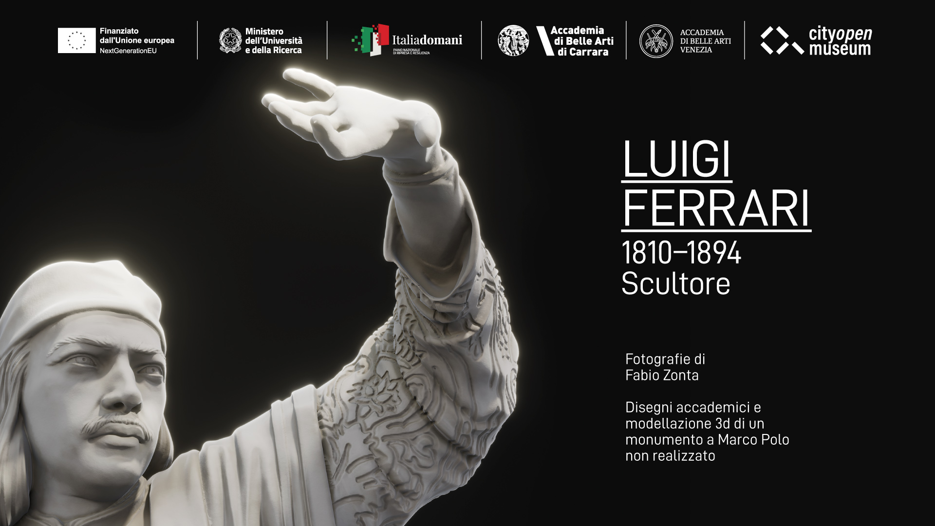 L’Accademia di Belle Arti di Venezia presenta, negli spazi del Magazzino del Sale 3, una mostra dedicata a Luigi Ferrari (1810-1894), tra i protagonisti della scuola di Scultura ottocentesca dell’Istituzione. L’esposizione si inserisce nel progetto City Open Museum, sostenuto dai finanziamenti PNRR promossi dal Ministero dell’Università e della Ricerca, con capofila l’Accademia di Belle Arti di Carrara e restituirà per la prima volta al pubblico, in digitale e in scala, il monumento a Marco Polo progettato da Ferrari e mai realizzato.