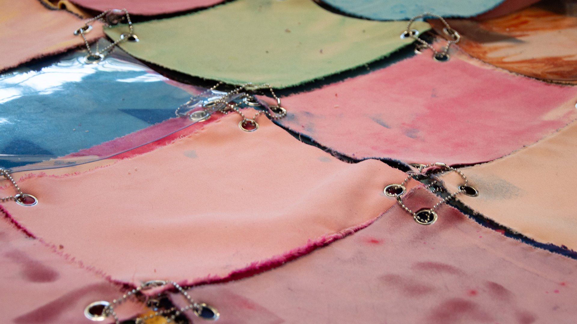 Gli esponenti, studenti delle scuole di Pittura della Giudecca, si sono confrontati con il medium tessile, più precisamente con 200m di velluto color pesca donati da Homo Faber 2024. Il tessuto funge nella mostra Over-Pinking sia come supporto per motivi ritrovati, sia come rappresentazione di sé stesso. Le opere esposte dimostrano come la liberazione del materiale dalla sua originaria funzione decorativa possa portare a nuovi livelli di significato, inserendosi nella tradizione dei movimenti di emancipazione dell’arte moderna.